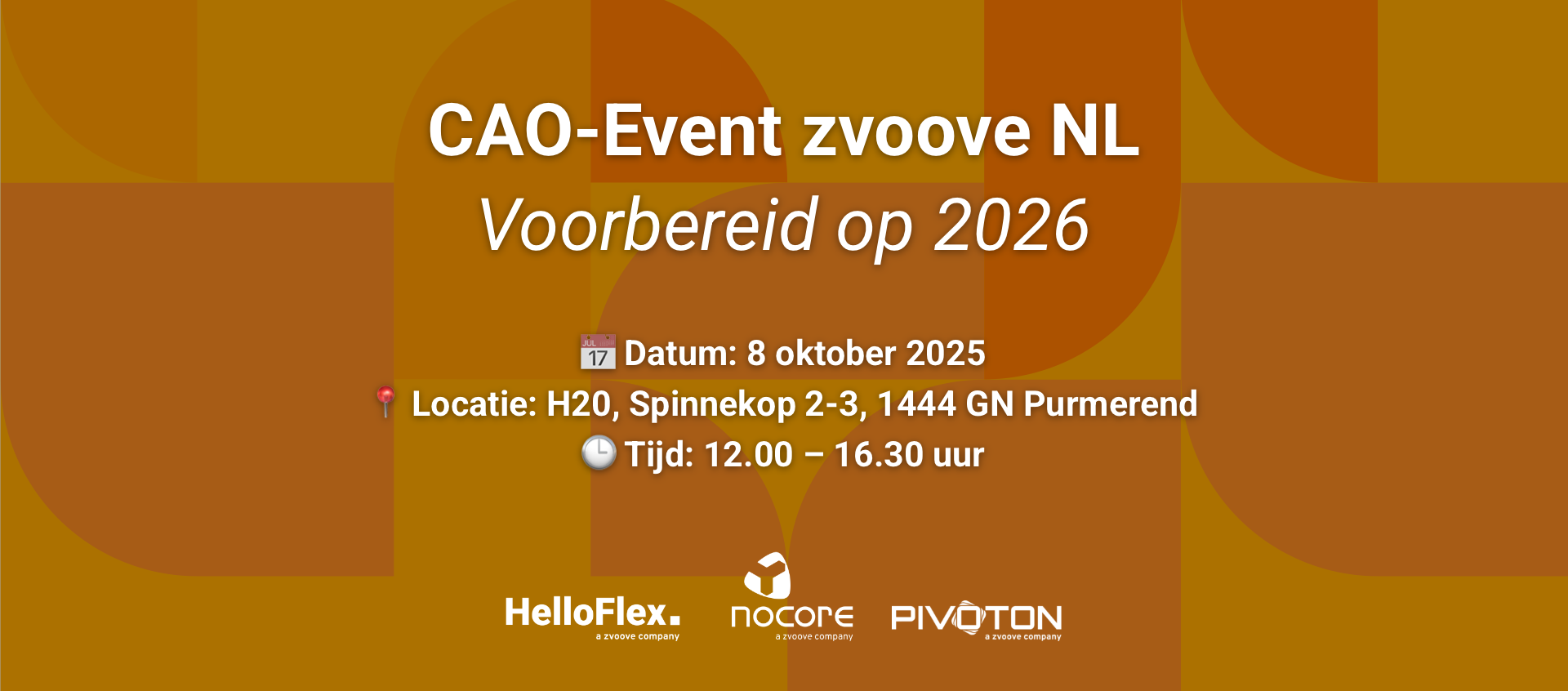 Tijdens het CAO-event van zvoove NL laten wij (HelloFlex, Pivoton en Nocore) zien hoe onze gezamenlijke oplossing je helpt deze nieuwe verplichtingen snel, eenvoudig en efficiënt in te regelen.